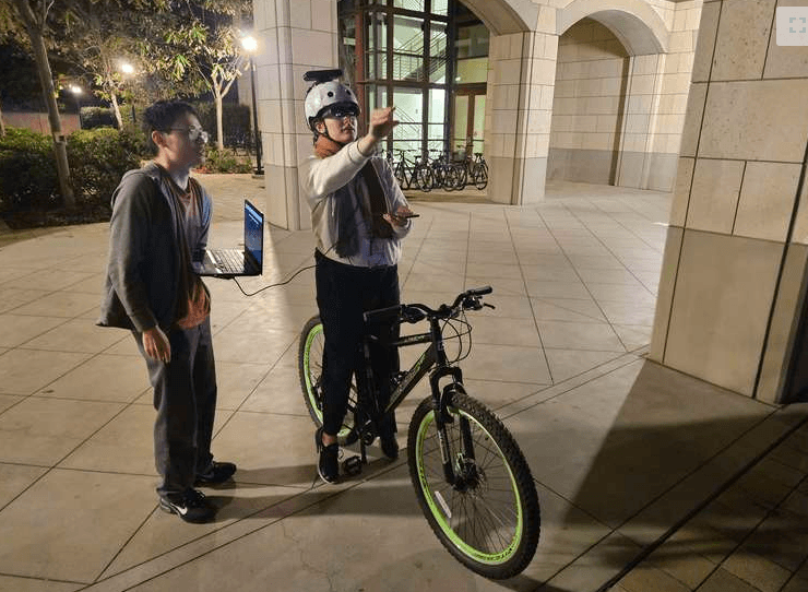 Raidar integrates XReal glasses and Orbec monocular camera mounted on a bicycle helmet.